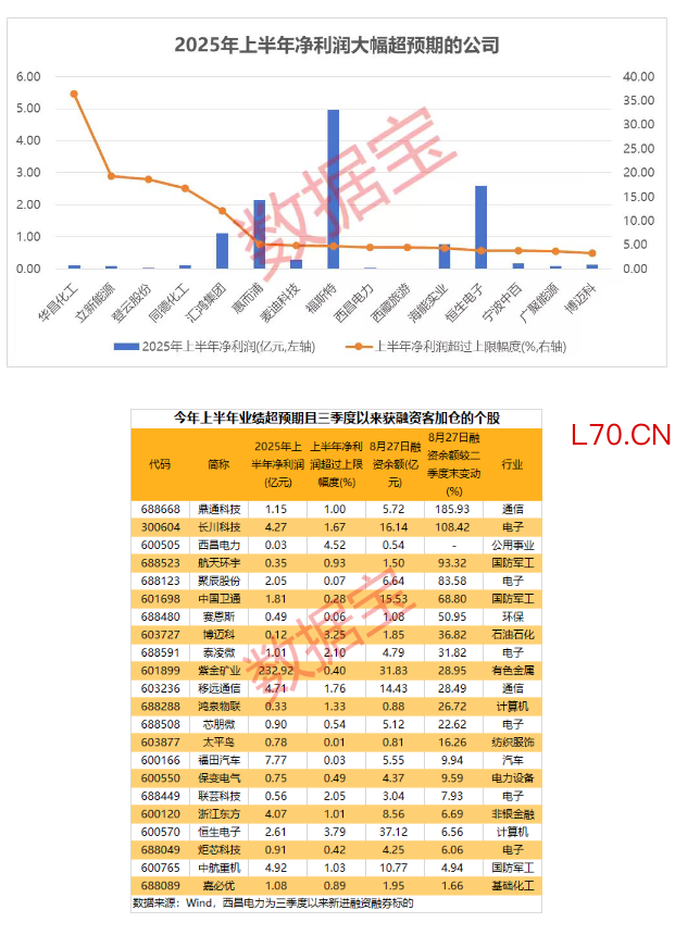 60股上半年业绩超预期,13股三季度以来获融资客大幅加仓