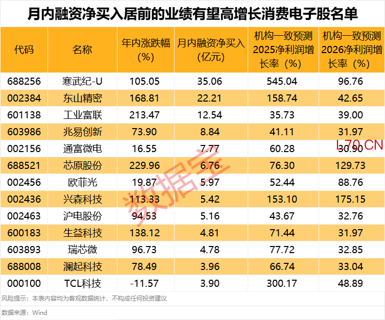 月内融资净买入居前的业绩有望高增长消费电子股名单出炉