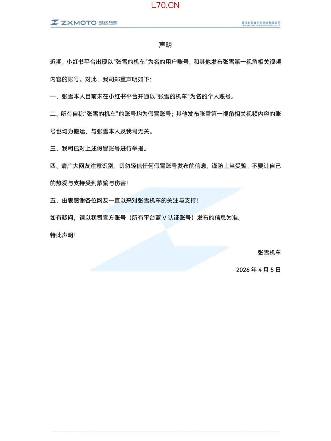 张雪机车打假冒充账号