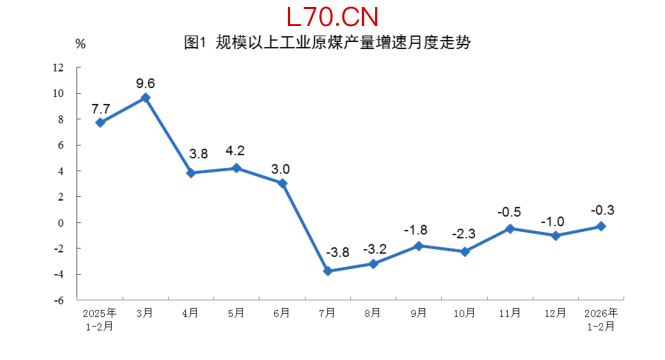 国家统计局:1—2月份,规上工业原煤产量同比下降0.3%