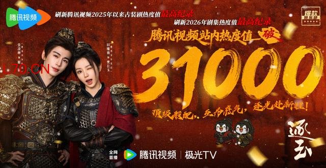 3月15日,《逐玉》腾讯视频站内热度值破31000