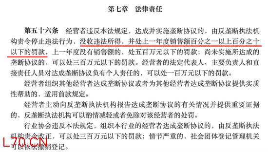 按照《反垄断法》规定,违反该法律规定,达成并实施垄断协议的,没收违法所得,并处以上一年度销售额1%以上至10%以下的罚款。
