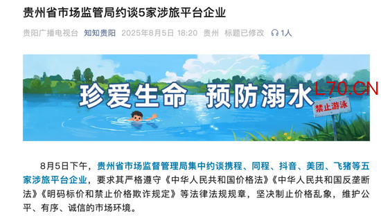 ②2025年8月,贵州省市场监管局约谈携程等5家旅游平台企业。