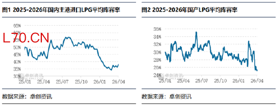 2026年3月国产液化气炼厂库容率呈现触底回升、而后震荡走低的走势特征。截至3月27日统计数据显示,LPG炼厂月末库容率为25.95%,较上月末同期相比,下降4.73个百分点。