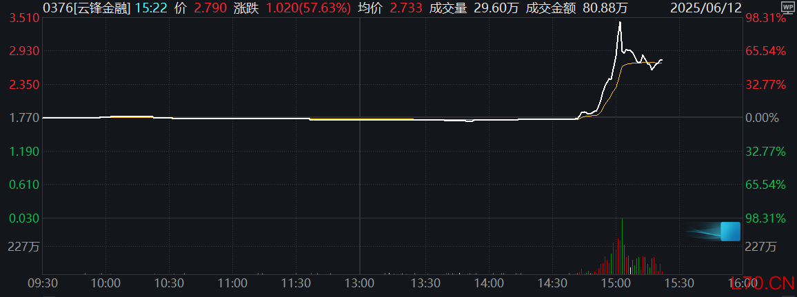 云锋金融盘中一度飙升98%证券与金融资讯门户